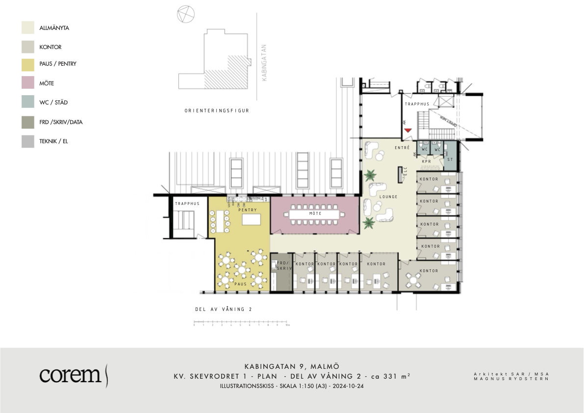 Välkommen till Kabingatan och ett inflyttningsklart kontor med genomtänkt planlösning. Lokalen består av flera enskilda kontorsrum och ett stort konferensrum för upp till 18 personer. Här får du en modern och trivsam arbetsmiljö med jordnära och harmoniska färger.