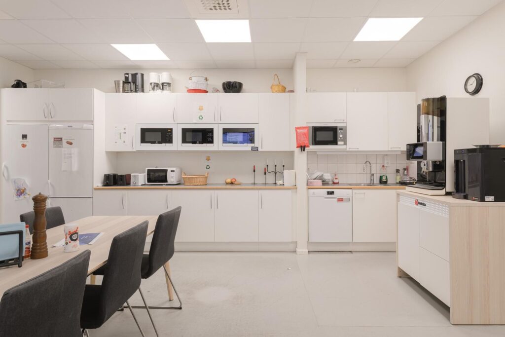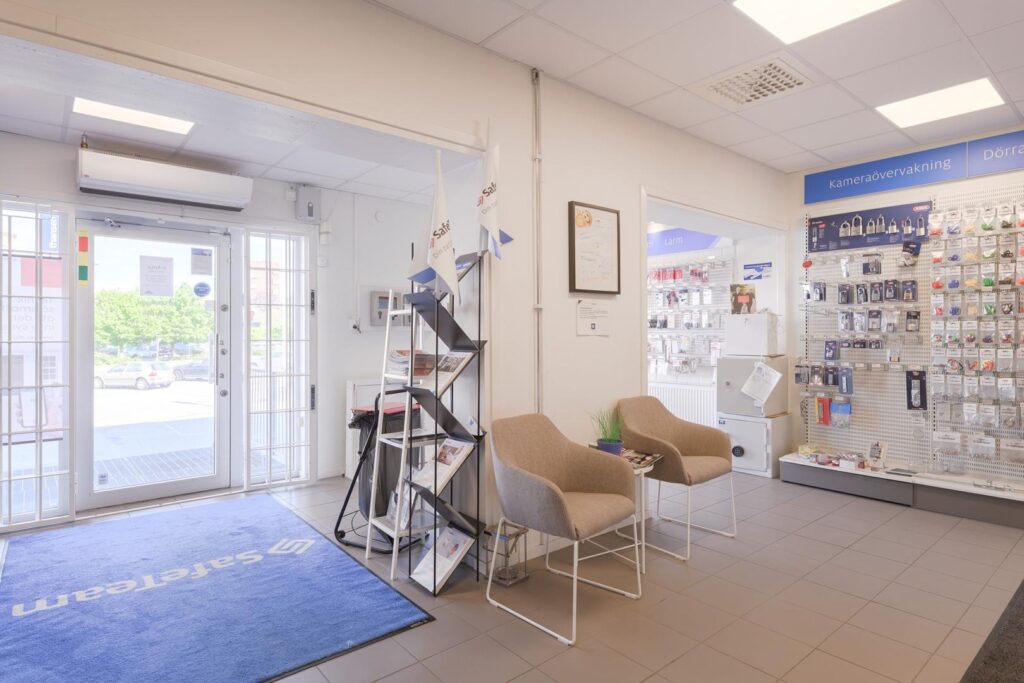 I dagsläget är lokalen uppdelad i en kundvänlig butiksdel, praktiskt lager med både höglager och butikslager samt moderna kontorsutrymmen. Kontorsdelen består av både cellkontor och öppet landskap som skapar en bra balans mellan fokus och samarbete. Här finns också tillgång till mötesrum i olika storlekar som lämpar sig för både fysiska och digitala möten i lugn atmosfär. Det rymliga köket skapar en trevlig samlingsplats för personalen. Fastigheten erbjuder dessutom ett bra skyltläge då det passerar mycket folk i området.