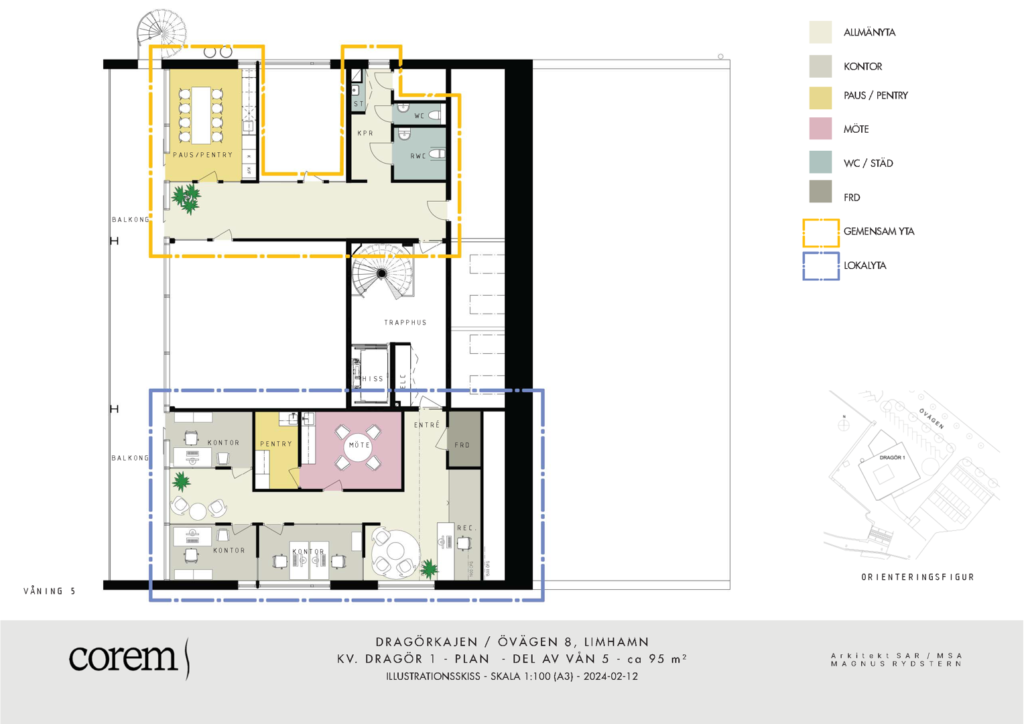 Välkommen till Övägen 8 på Limhamn. Med havet som granne har denna lokal på våning 5 av 6 en fantastisk utsikt över Öresund. Till lokalen hör gemensamt med övriga våningsplanet två toaletter, pentry samt en stor balkong.