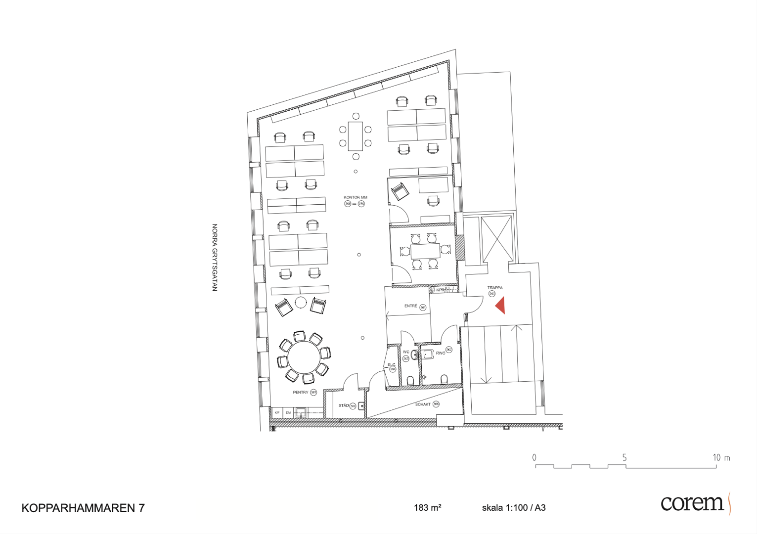 Mycket fin lokal med stora fönster beläget på plan 2 i denna charmiga fastighet. Kontoret är modernt renoverad med ljusa ytskikt och högt i tak med synliga installationer. Lokalen är fördelad på två konferensrum/kontorsrum och öppet landskap med plats för upp till 12 arbetsplatser.