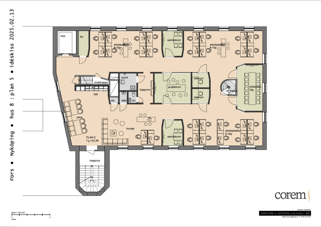 Välkommen till Forsgränd i Nyköping. Nu kan vi erbjuda en unik kontorslokal högst upp i hus 8 med kanske Nyköpings vackraste utsikt. Lokalen kommer anpassas i samråd med kommande hyresgäst så här finns möjlighet att vara med att sätta sin egen prägel på lokalen. I samma hus utformar vi just nu Trafikverkets nya etablering som står klar för inflytt hösten 2025.