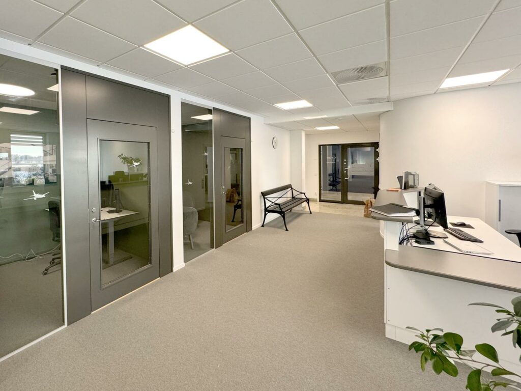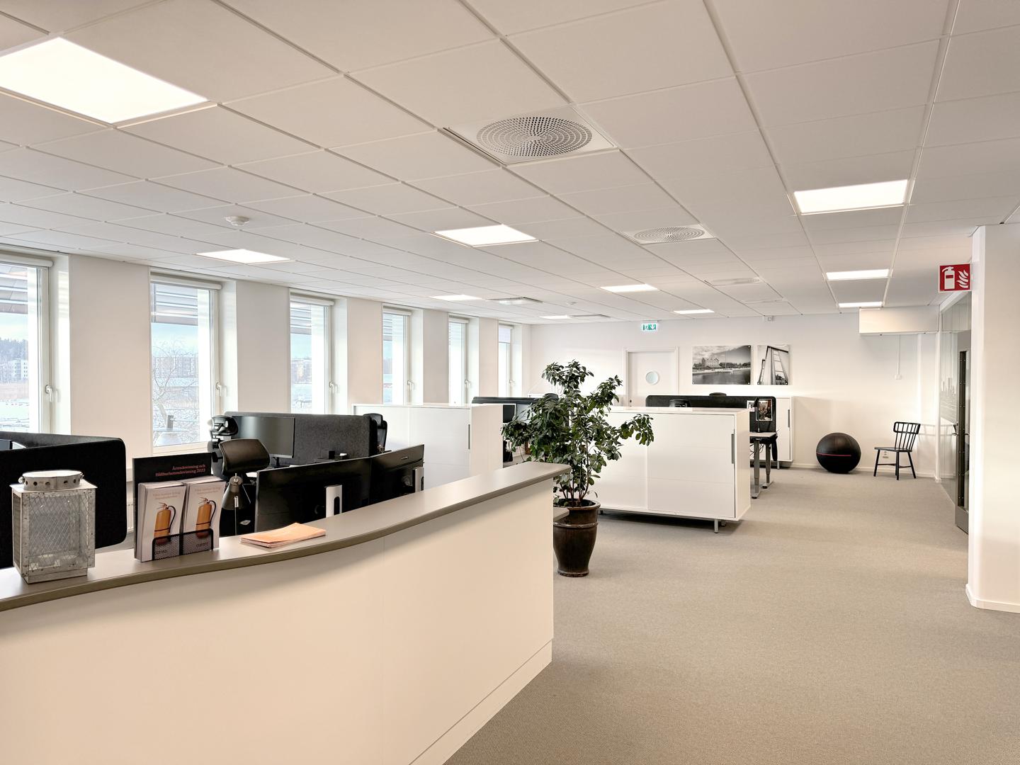 Välkommen till Gästabudsvägen 6. Lokalen ligger på andra våningen med stora öppna ytor för kontor eller showroom. Ni disponerar ett pentry, tre tysta rum, konferensrum samt förråd. Alla rum vetter mot småbåtshamnen i Nyköping.