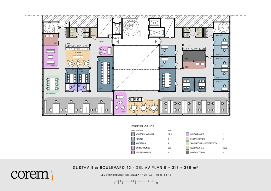 Välkommen till Gustav III:s Boulevard 42 i Solna. På den nionde våningen i denna imponerande fastighet finner ni ljusa lokaler med en magnifik vy över E4 och Brunnsviken samt ett perfekt skyltläge. Kontorslokalerna är för närvarande utformade med mestadels öppet landskap, kompletterat med några rum som kan användas som mötes- alternativt kontorsrum. Utöver detta finns en trevlig pentry- och pausyta. För de som föredrar att cykla till jobbet finns även ett omklädningsrum och dusch tillgängligt.