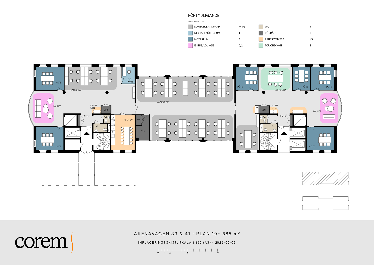 Lokalen dimensioneras för upp till ca 46 arbetsplatser beroende på önskad layout och arbetssätt.