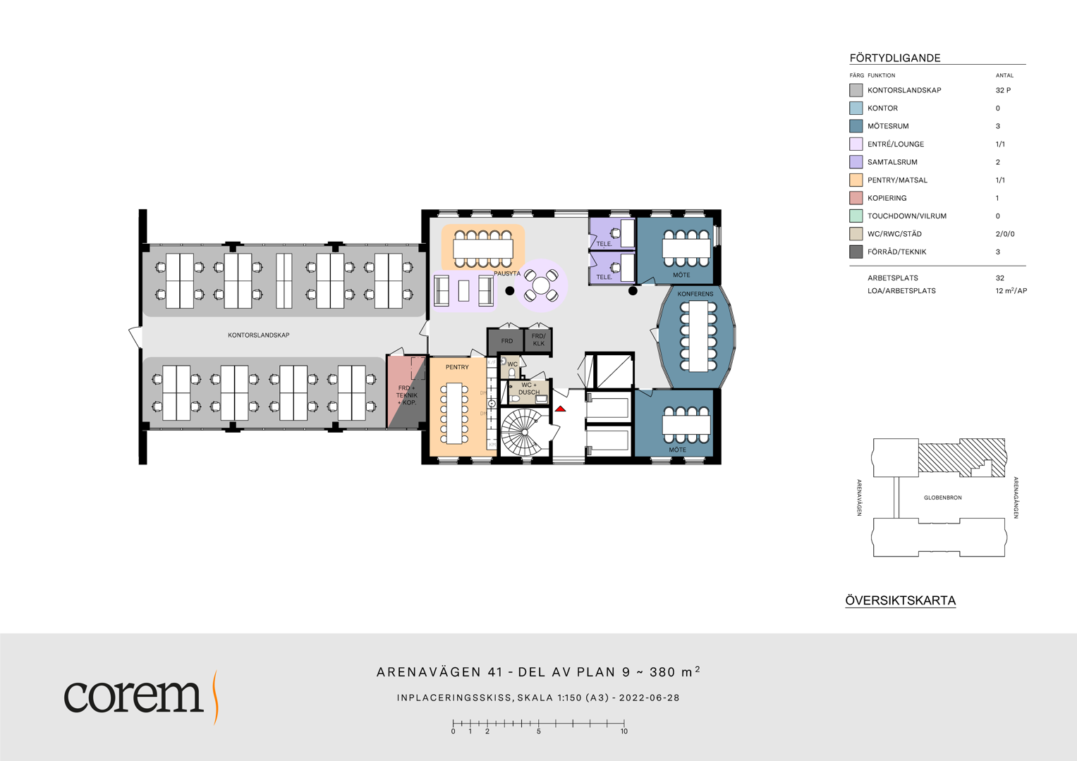 Lokalen dimensioneras för upp till 32 arbetsplatser beroende på önskad layout och arbetssätt.