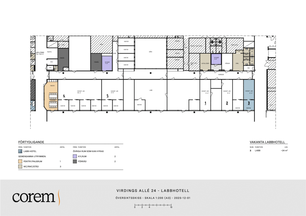 I Uppsala Business Parks labbhotell delar du pentry, omklädningsrum och toaletter med övriga hyresgäster i labbhotellet. Corem sköter drift och underhåll av de gemensamma ytorna. Här arbetar du i en stimulerande och social miljö med möjlighet till möten och nätverkande.