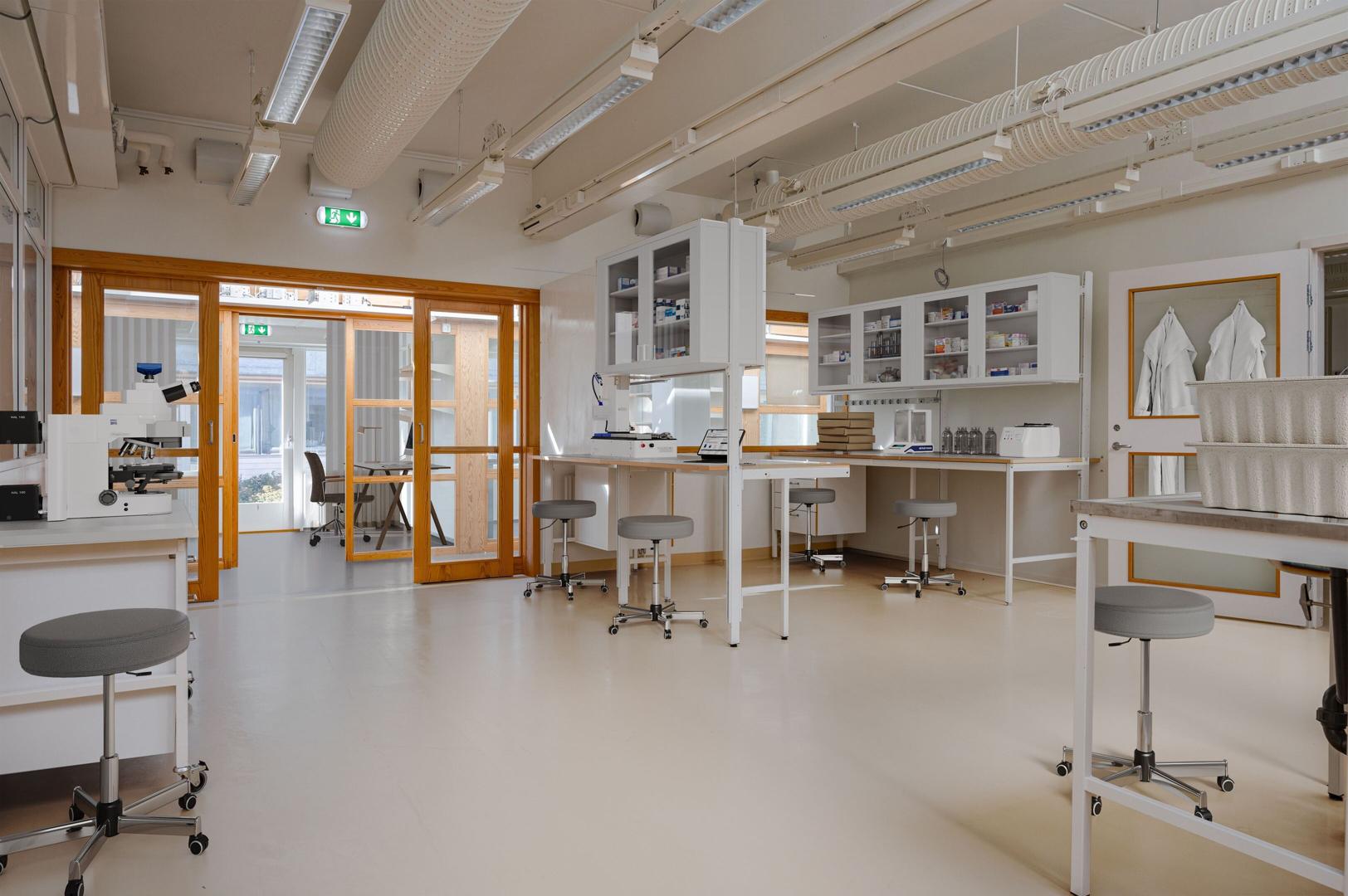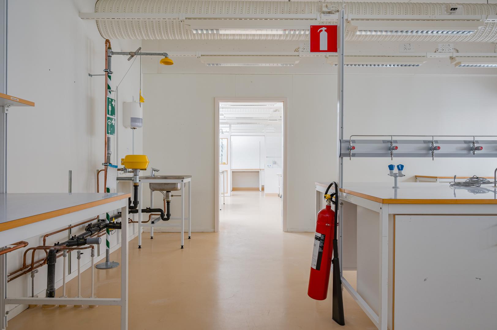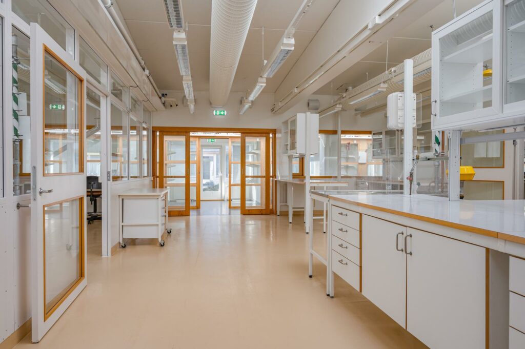Här erbjuds en inredd labblokal med möjlighet till tryckluft, kvävgas och destillerat vatten. Det finns många kontorsytor/skrivrum som kan användas som enskilda kontorsrum eller för fler personer. Lokalen är inredd med labbänkar, skåp, diskbänk.