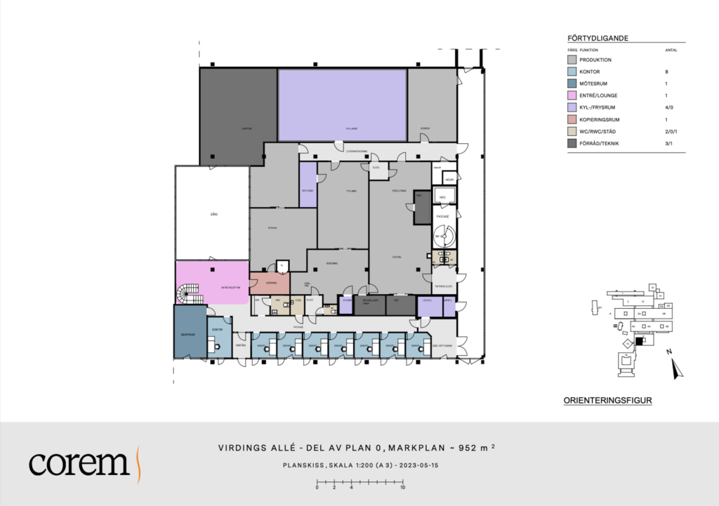 Här erbjuds en lokal på markplan med access direkt utifrån. Lokalen kan fungera som en mindre produktionslokal med rum för beredning, fyllning och förslutning. Du får tillgång till flera kylrum av olika storlek, frysrum och leveranskyl. Här finns också dragskåp och ventilerade kemikalieskåp samt ett klimatrum med avfuktare (torkrum). Det finns möjlighet till destillerat vatten, kvävgas och tryckluft. Här finns också många kontorsytor/skrivrum som kan användas som enskilda kontorsrum eller för fler personer.