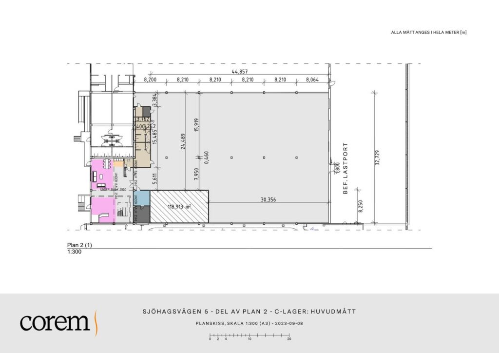 Välkommen till Sjöhagsvägen 3. Här erbjuds en öppen och rymlig lokal som är anpassad för dig med ett behov av distributionsyta i direkt anslutning till kontoret. Takhöjden är 4,25 meter och avstånd mellan bärande pelare är 7,8 meter. Lokalen ligger i direkt anslutning till en stor lastkaj, tillgänglig för lastbil med bakavlyft.