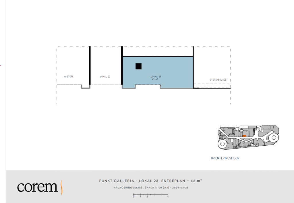 Välkommen till gallerian Punkt och händelsernas centrum. Här erbjuds mindre och mellanstora butikslokaler från 43 kvm till 104 kvm. Ta chansen och nystarta din verksamhet i ljusa rum med högt i tak, inbjudande entréer och stora skyltfönster från golv till tak. Här får du maximal synlighet och höga besöksflöden på köpet med grannar som Gant, Systembolaget, Coop och Glitter.